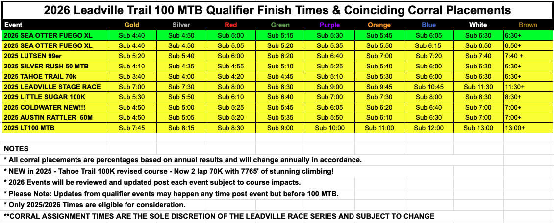 **CORRAL ASSIGNMENT TIMES ARE SUBJECT TO CHANGE AT ANY TIME AT THE SOLE DISCRETION OF THE LEADVILLE RACE SERIES.**